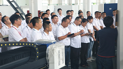 隨后,生產部門的工作人員現場將一臺大功率的激光設備進行重新拆卸組裝,幫助銷售進一步理解激光產品的構成。培訓期間,銷售人員提出的一些關于設備及生產的問題,則由技術部門的工作人員耐心地提供詳細的解答。現場氛圍十分和諧友善。不少銷售人員表示,在經過這次培訓之后,他們將帶著更加豐富全面的知識回到自己的崗位上,服務更多客戶。