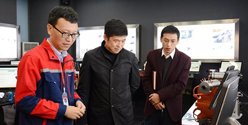 公司肖泳林副總經理及程振濤副總監在公司展廳向劉副區長一行介紹了我司目前的主營產品。劉副區長詢問了我司產品的技術水平、市場競爭情況,并重點了解玻璃磨削電主軸、PCB鉆孔電主軸、五軸轉臺、工業機器人減速器等產品。