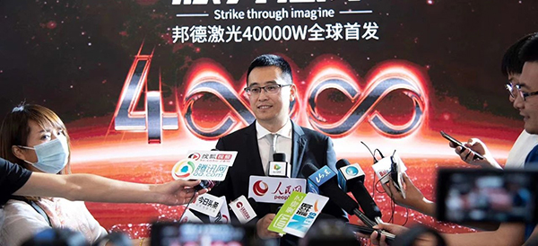 會后,邦德激光執行總經理王魯接受了與會媒體的采訪,就40000W產品的研發及應用、國內外市場發展以及2025戰略進行了分享。