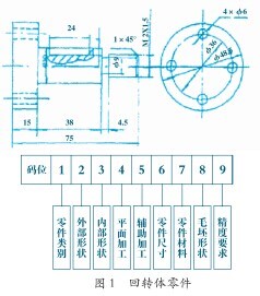 智能化模擬仿真技術(shù),可以通過(guò)對(duì)數(shù)控機(jī)床的加工工藝路線進(jìn)行仿真模擬而得出適合加工的一種軟件控制手段,結(jié)合運(yùn)用成組技術(shù)可以提高數(shù)控加工編程效率。例如:根據(jù)其外形結(jié)構(gòu)、技術(shù)要求和加工方法的相似性,把零件分成若干組,在每一組零件中選出一個(gè)代表性零件(它可以是實(shí)際存在的,也可以是假想的,但必須包括組內(nèi)所有零件的加工要素),根據(jù)這個(gè)代表零件模擬出一套典型的工藝規(guī)程,選定和設(shè)計(jì)一組機(jī)床及工藝設(shè)備,并把它們組成一個(gè)專(zhuān)門(mén)的加工設(shè)計(jì),如果模擬仿真技術(shù)成功就只需要略微做一下調(diào)整,便可以進(jìn)行加工生產(chǎn)。例如,運(yùn)用奧匹茲分類(lèi)方法拆分代號(hào)為12031的零件結(jié)構(gòu),如圖1所示。該零件是一個(gè)回轉(zhuǎn)體零件, 所以第一位數(shù)是1;一端有臺(tái)階,并有緊固螺紋,所以第二位數(shù)是2;無(wú)內(nèi)孔,所以第三位數(shù)是0;需要加工鍵槽,所以第四位數(shù)是3;有四個(gè)軸向孔,與其他要素?zé)o位置要求,所以第五位數(shù)是1。按成組方式來(lái)組織零件生產(chǎn)時(shí),首先按照零件的結(jié)構(gòu)特征、工藝特征以及加工設(shè)備的特征,將各種零件進(jìn)行分組、歸類(lèi)與編碼,然后建立每類(lèi)零件的典型圖庫(kù)和成組加工工藝庫(kù)。