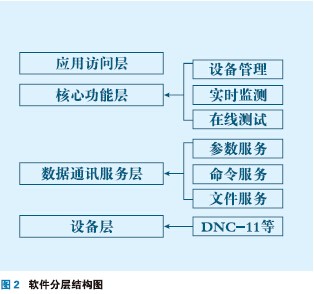 核心功能層將具體實現的功能劃分為三類:設備管理、實時監測和在線測試。設備管理具體包括數控機床的參數管理,數控機床的遠程控制,數控機床的加工程序管理,數控機床設備信息管理等。實時監測主要指數控機床運行狀態監測,各軸狀態監測,PLC狀態監測,以及數控機床關鍵部位監測等。在線測試包括數控機床故障模擬測試等。