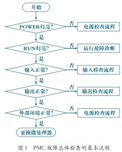 (1)PMC總體檢查的基本流程,如圖1所示。主要找出故障點(diǎn)的大方向,再逐漸細(xì)化以找出具體故障。