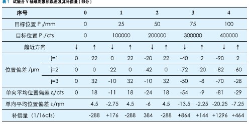 (1)根據測定的螺距累積誤差,計算應該補償的量并轉換為螺距補償表的格式(表1),其中補償表中的補償量單位為1/16脈沖,表示間隙收縮率,用以決定在方向改變時間隙的收縮速度。