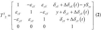 1)X 軸( 低序體2) 固連在床身上( 低序體0) ,綜合誤差變換矩陣T02 為:
