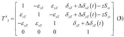 3)Z 軸( 低序體4) 相對Y 軸( 低序體3) 的綜合誤差變換矩陣T34 為: