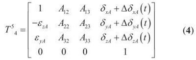 4)A 軸( 低序體5) 固連在Z 軸( 低序體4) 上,綜合誤差變換矩陣為T45 為: