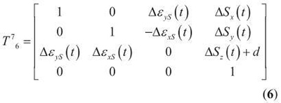6)主軸S( 低序體7) 相對于B 軸( 低序體6) 的綜合誤差變換矩陣T76 為: