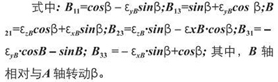 式中: A12=-εzAcos α+εzA·sinα; A13 = εzA·sinα+εyA·cosα; A22= cosα-εxA·sin α; A23-sinα-εxA·cosα; A32= εxA·cos α + sinα; A33 =- εxA·sinα +cosα ; 其中,擺頭A 相對與Z 軸轉動α。